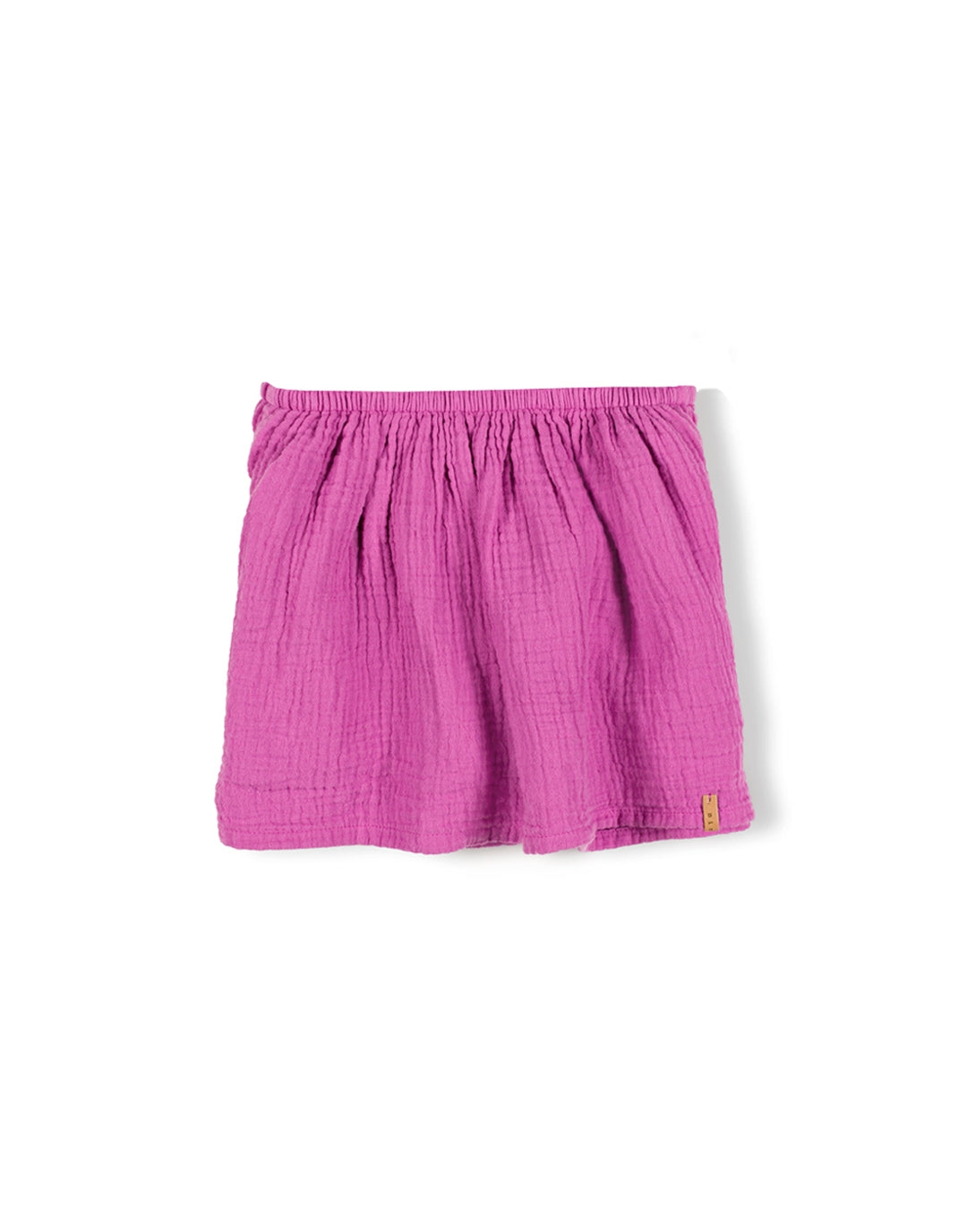 De Tos Skirt in de roze/paarse kleur ‘Lotus’ is gemaakt van heerlijk zacht, biologisch mousseline katoen. Heerlijk luchtig voor de zomer! Het rokje heeft een onderrokje en een elastische band waardoor het comfortabel zit. Het leren Nixnut label is bevestigd aan de onderkant. Maak er een co-ord set van met de Lo Top.